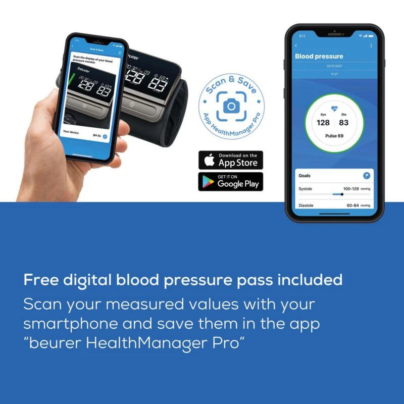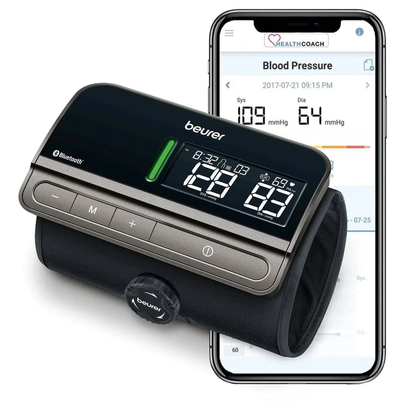 اتصال بلوتوث به اپلیکیشن: انتقال دادهها به اپلیکیشن Beurer HealthManager Pro برای ذخیرهسازی نامحدود، پیگیری طولانیمدت و اشتراکگذاری با پزشک.
